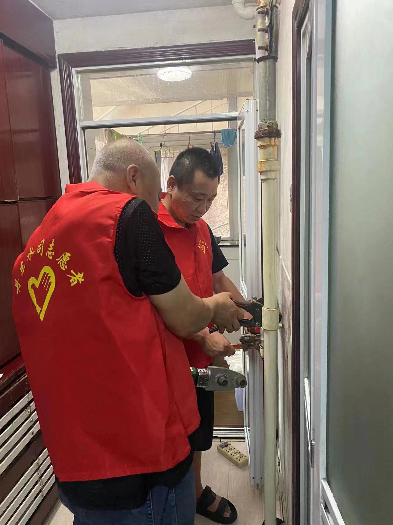 同日,元寶處黨支部組織黨員志愿者來到砂輪廠小區為社區居民供水設施進行義務維修。